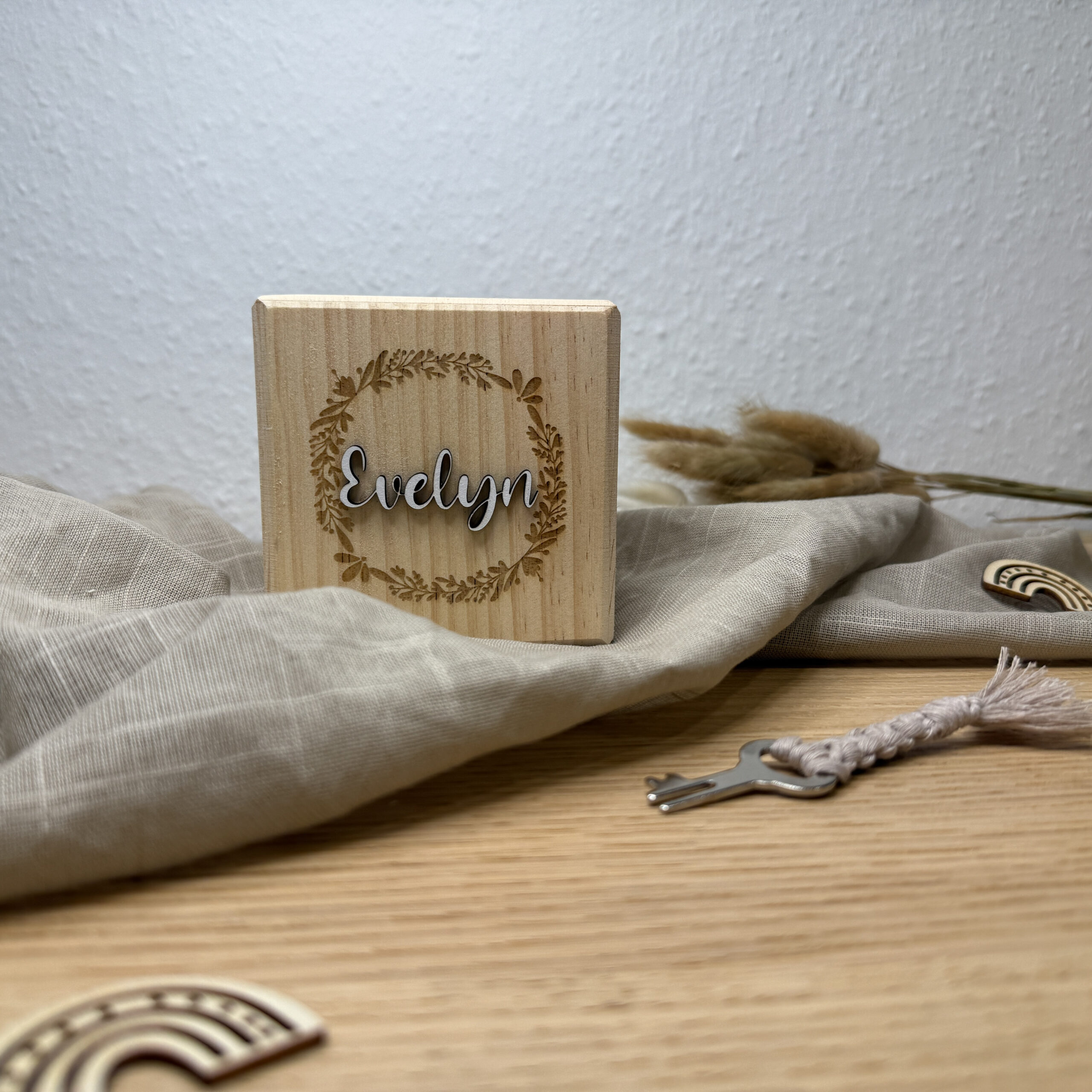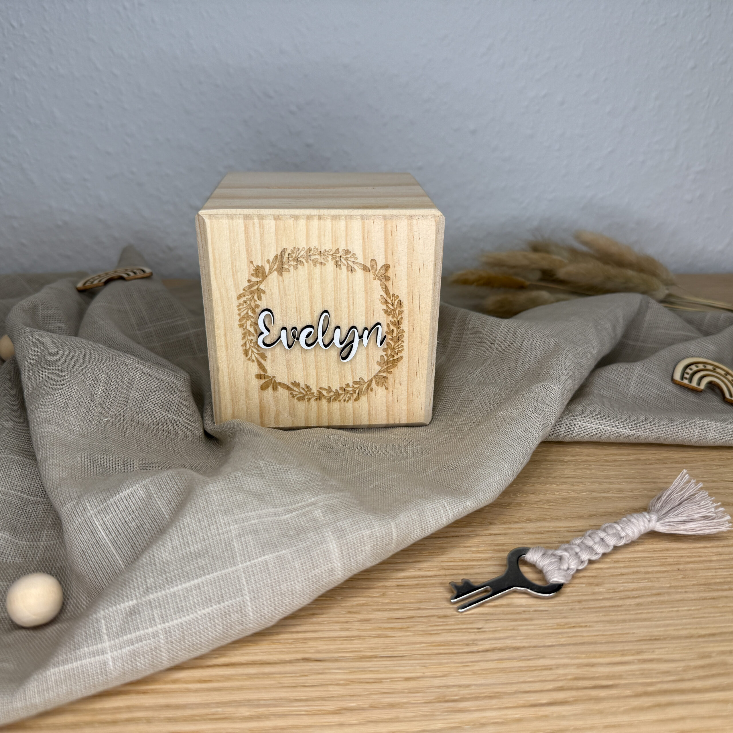 - Individuell & persönlich – Der Name des Kindes wird aus weißem Holz gelasert und liebevoll auf der Spardose angebracht. So entsteht ein einzigartiges Erinnerungsstück, das lange Freude bereitet.