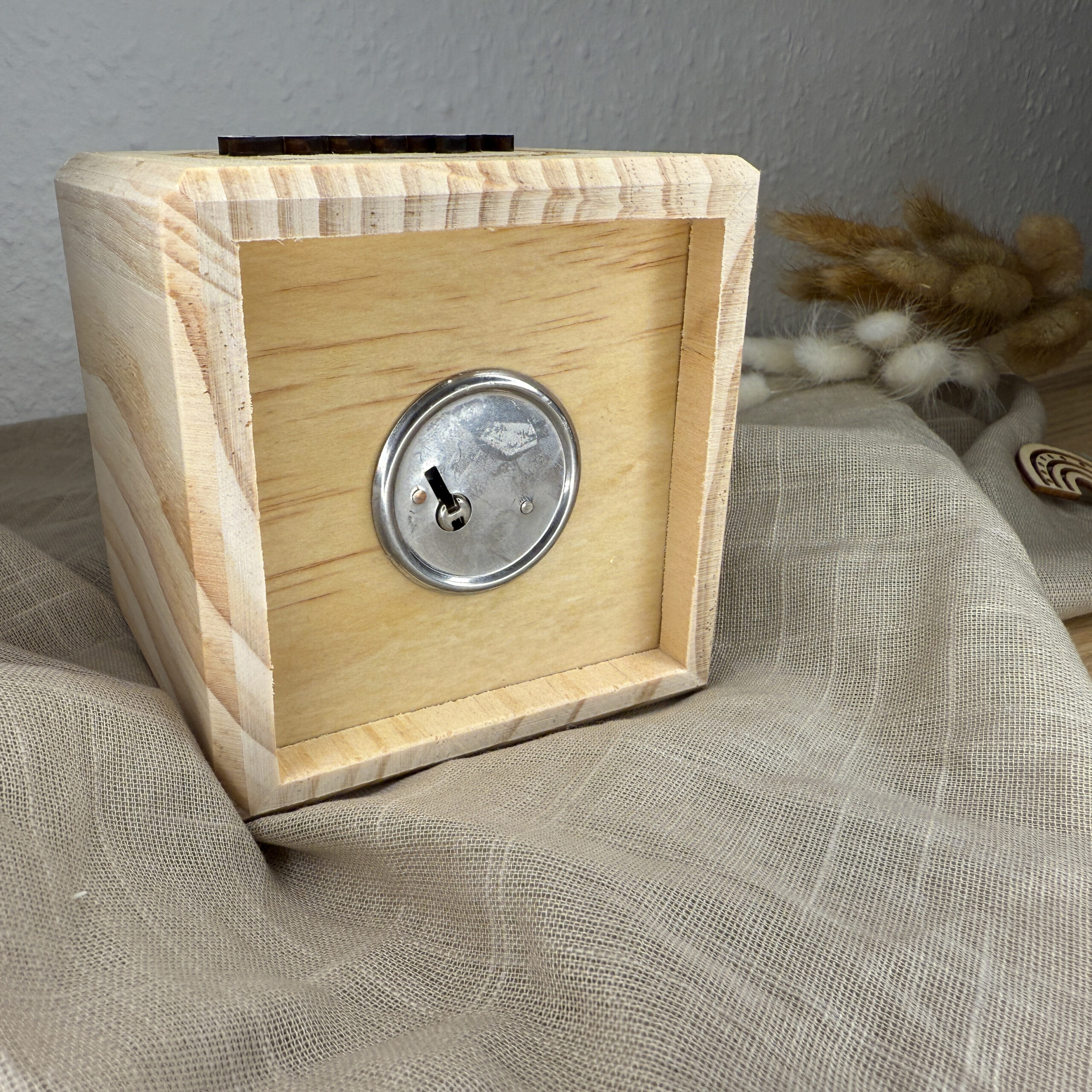 Geld sparen kann so schön sein! Unsere nachhaltige Spardose aus Kiefernholz ist nicht nur ein praktisches, sondern auch ein ganz besonderes Geschenk.