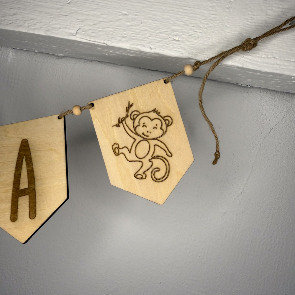 Diese zauberhafte Wimpelkette ist ein ganz persönliches Highlight im Kinderzimmer und gleichzeitig eine wunderschöne Geschenkidee zur Geburt, Taufe oder zum Geburtstag. Jeder einzelne Wimpel wird sorgfältig aus Holz gelasert und anschließend mit viel Liebe zum Detail verarbeitet. Die Wimpelkette besteht aus allen Buchstaben des gewünschten Namens – auf jedem Wimpel befindet sich genau ein Buchstabe. So entsteht ein harmonisches Gesamtbild, das den Raum stilvoll und gleichzeitig persönlich schmückt. Zusätzlich zu den Buchstaben enthalten die beiden äußeren Wimpel ein Wunschmotiv – entweder aus der niedlichen Tierwelt oder nach euren Wünschen. Diese besonderen Elemente machen die Wimpelkette zu einem echten Unikat. Der Basispreis umfasst 5 Wimpel (3 Buchstaben- und 2 Motivwimpel). Ab dem sechsten Wimpel wird jeder zusätzliche Buchstaben- oder Motivwimpel nach Preistabelle berechnet.