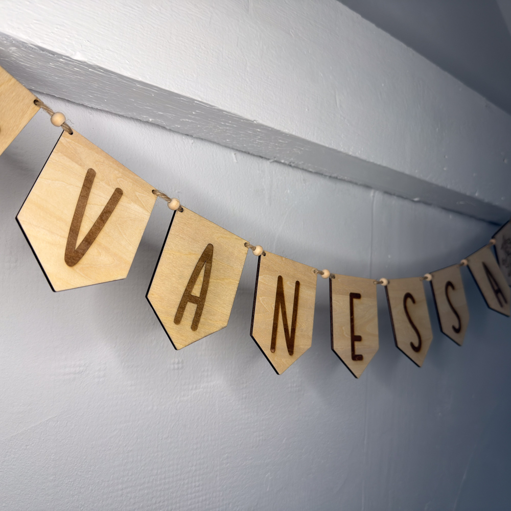 Gefertigt aus hochwertigem Holz und sorgfältig gelasert, wirkt die Wimpelkette natürlich, zeitlos und harmonisch in jedem Raum. Auch als Geschenk sorgt sie für einen besonderen, persönlichen Moment.
